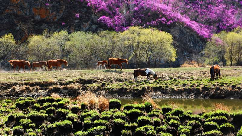 Horses bathe in the sunshine in the grassland of Daur Autonomous Banner of Morin Dawa. [Photo by Jiang Xiwu/for chinadaily.com.cn]