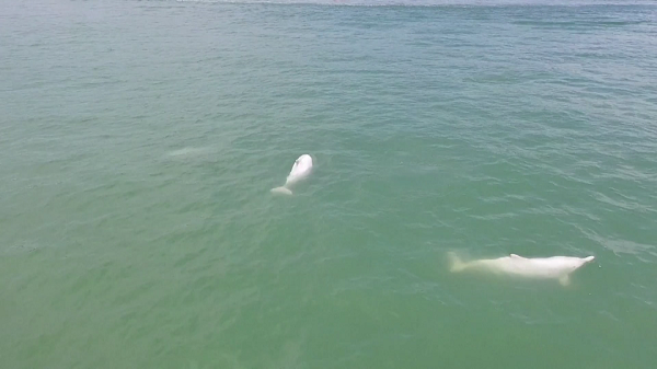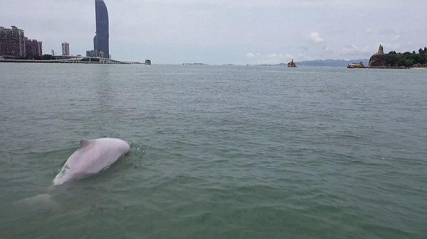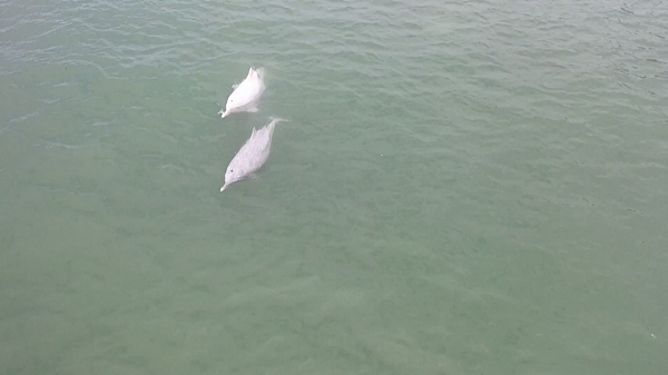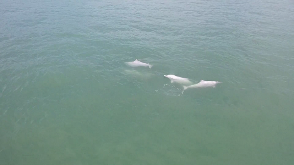 Brimming with energy! A playful pod of Chinese white dolphins frolics and leaps out of the water near Gulangyu Island in Fujian province. Witnessing their joyful acrobatics is a sight to behold!