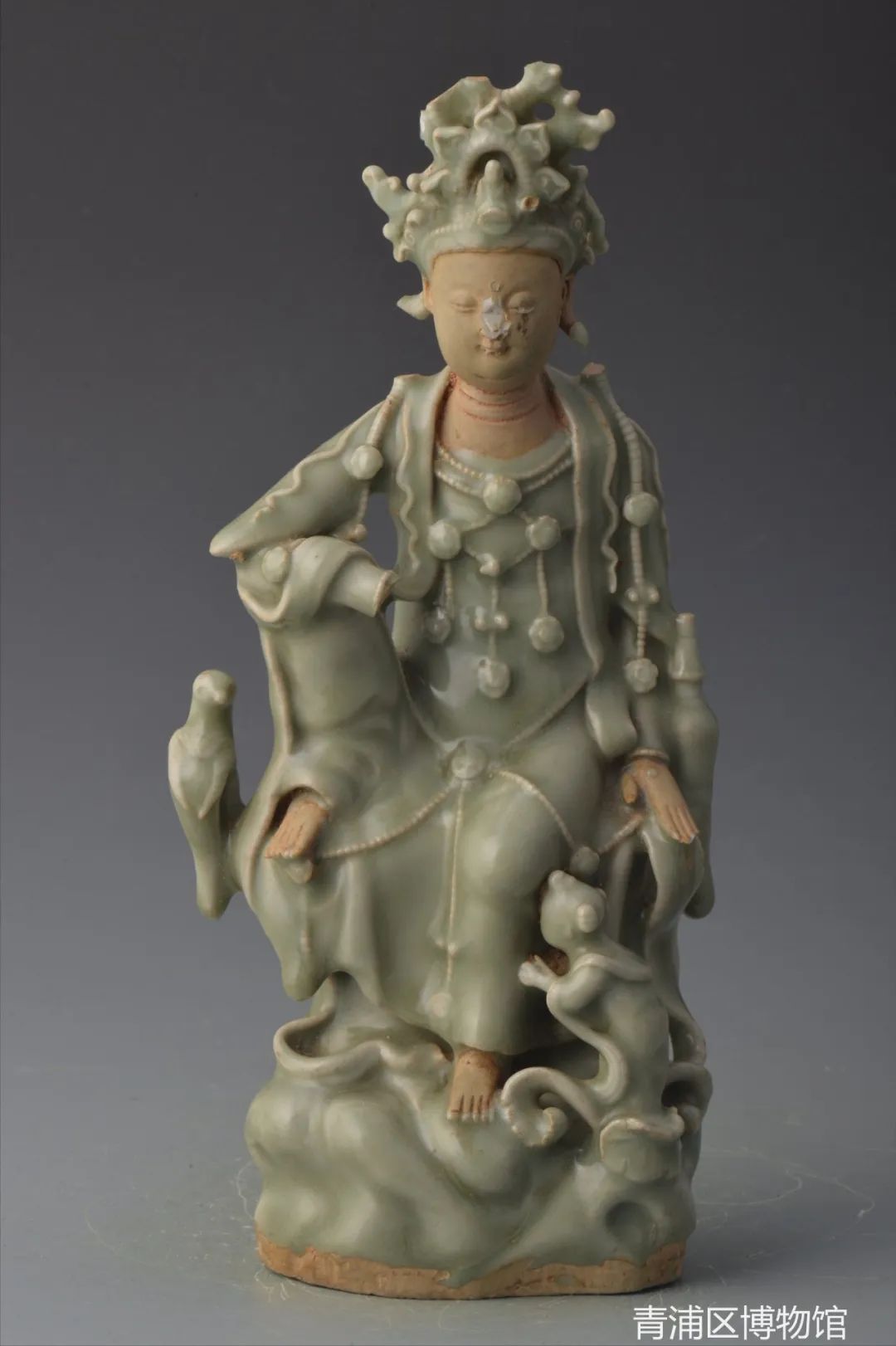 Yuan Dynasty (1271-1368) Long Quan Kiln celadon Avalokitesvara statue [Photo/Official WeChat account of the Qingpu Museum]