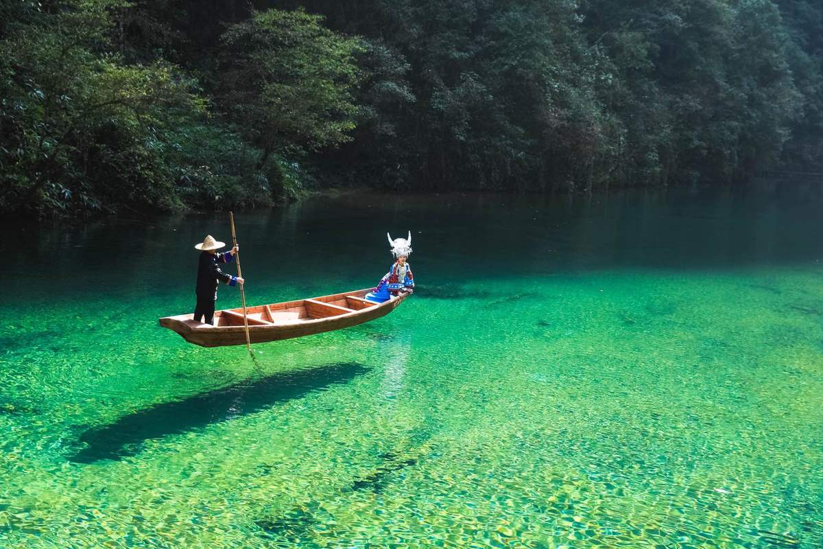 A tourist rows a boat in the Pingshan Canyon in Hefeng county, Enshi, Hubei province. [Photo provided to chinaservicesinfo.com]