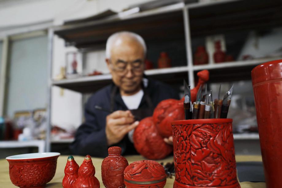 Zhu Qingyuan, a master artisan of carved lacquerware in Nansong village of Gu'an county, Langfang, Hebei province, has given all his energy to the inheritance and preservation of his craft over the past several decades.
