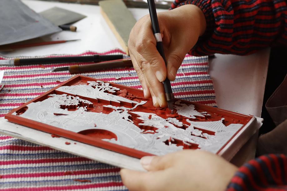 Because the whole process is done by hand, the production of carved lacquer is time-consuming, he said.