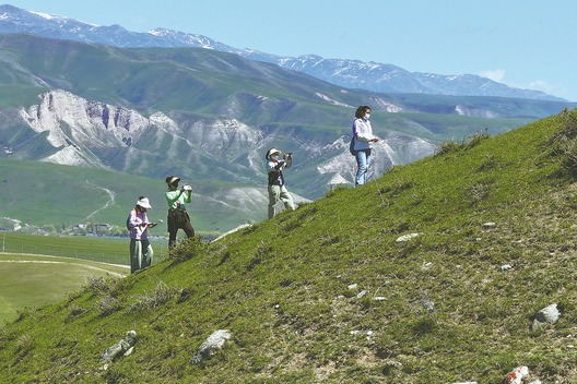 In the shade cast through the lattice window, four musicians and two observers – all in a kneeling position – are engaging in a musical performance. A house in such a style was likely used as a shrine for worshiping in ancient times.