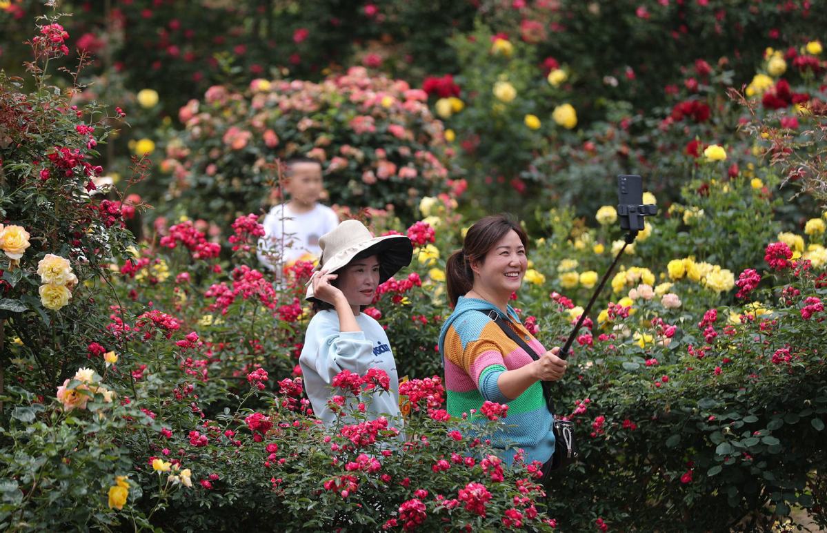 Tourists enjoy flowers at a flower base in Dongmen village, Jiuzhou town, Huangping county of Qiandongnan Miao and Dong autonomous prefecture, Southwest China's Guizhou province, May 13, 2023. With flowers blooming in the early summer, the flower industry in China witnesses robust growth. [Photo/Xinhua]