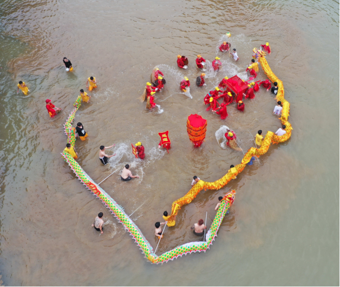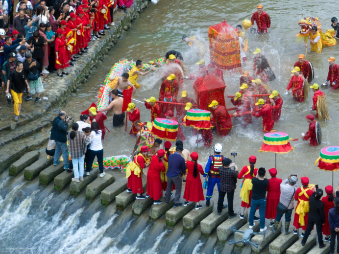 Young man carried the Mazu statue across the river, and dozens of villagers played the role of water monsters to stop them. Finally, the statue was sent back to the temple.