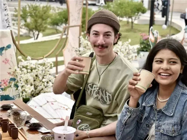 Foreigners enjoy a cup of tea at the festival. [Photo/WeChat account: wenzhoukean]