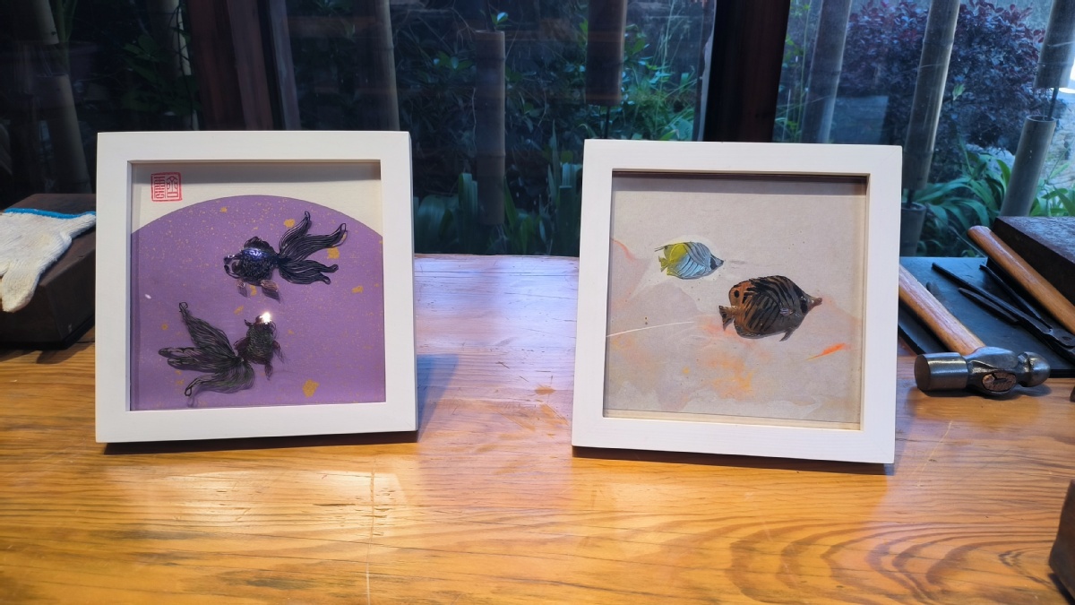 The artworks made of iron are on display at a workshop at Qiyun tourism town, Xiuning county of Huangshan city, Anhui province, May 15, 2023. [Photo by Zhang Wenfang/chinadaily.com.cn]
