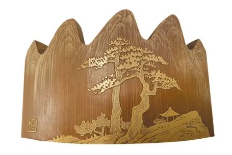 A bamboo carving pen rack by Bai Shifeng depicts landscape. [Photo/Official WeChat account of the Changzhou Museum]