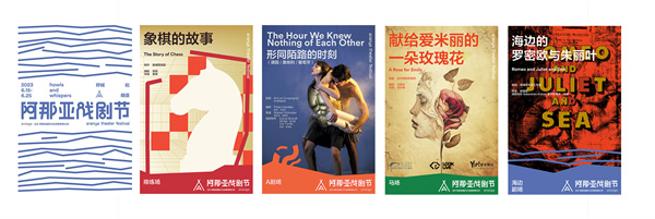 The main poster for this year's Aranya Theater Festival and posters for some of the performances to be staged at the event.[Photo provided to China Daily]
