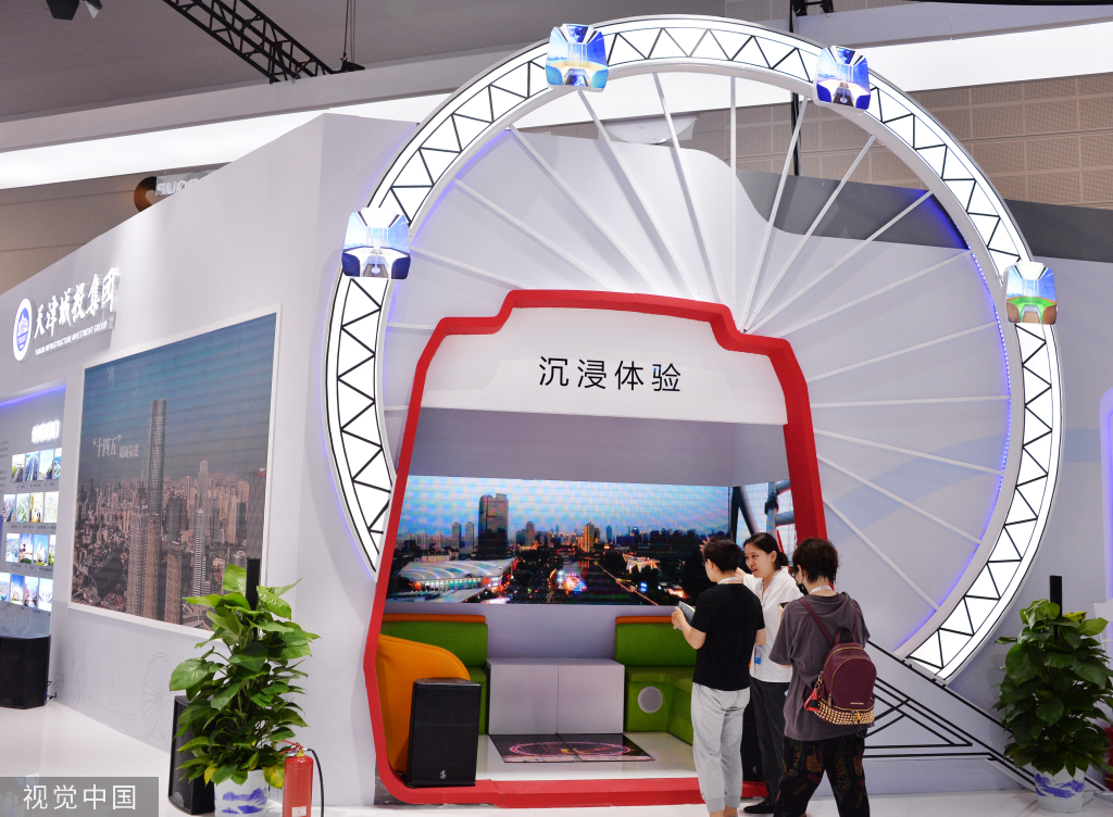 An immersive experience booth at the 7th World Intelligence Congress in Tianjin, May 17, 2023. [Photo/VCG]