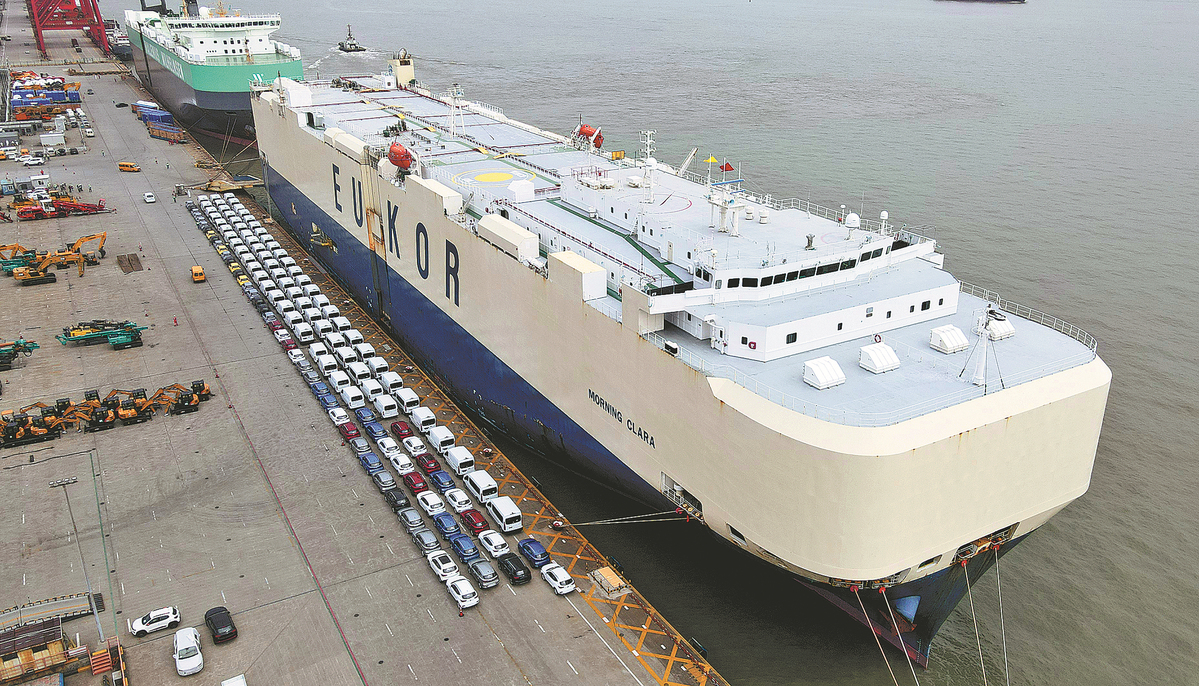 Vehicles made by SAIC Motor, based in Shanghai, wait to be exported at a port in the city. FANG ZHE/XINHUA