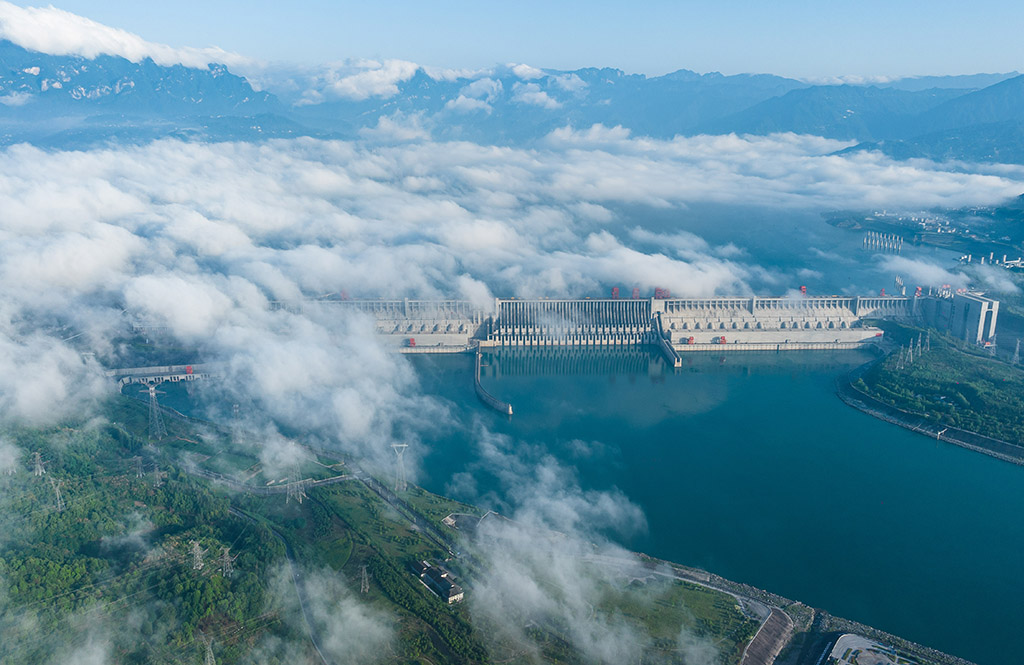 Sea of clouds appears over the Three Gorges Dam in Hubei