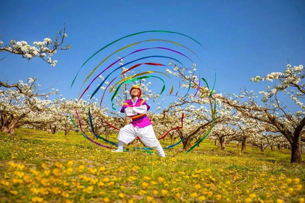 Pear blossoms are now in bloom in Yanbian prefecture, Jilin province. The pristine flowers sway gently in the spring breeze, covering the twisted branches with their delicate petals. [Photo/Wangqing County Photographers Association]