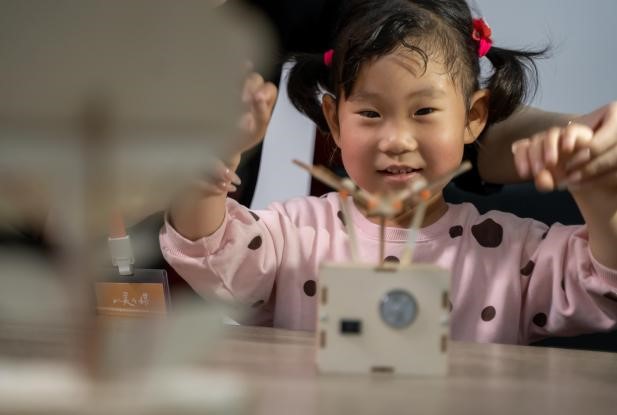A child experiences the interactive installation at the Weihai Museum. [Photo/provided to chinaservicesinfo.com]