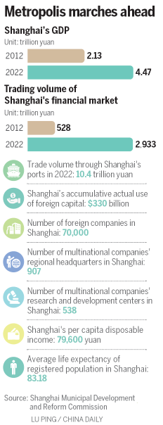 Shanghai's role as an international financial center has thus been consolidated. Data from the Shanghai Municipal Development and Reform Commission show the total trading value in the city reached 2,933 trillion yuan last year, up from 528 trillion yuan in 2012.