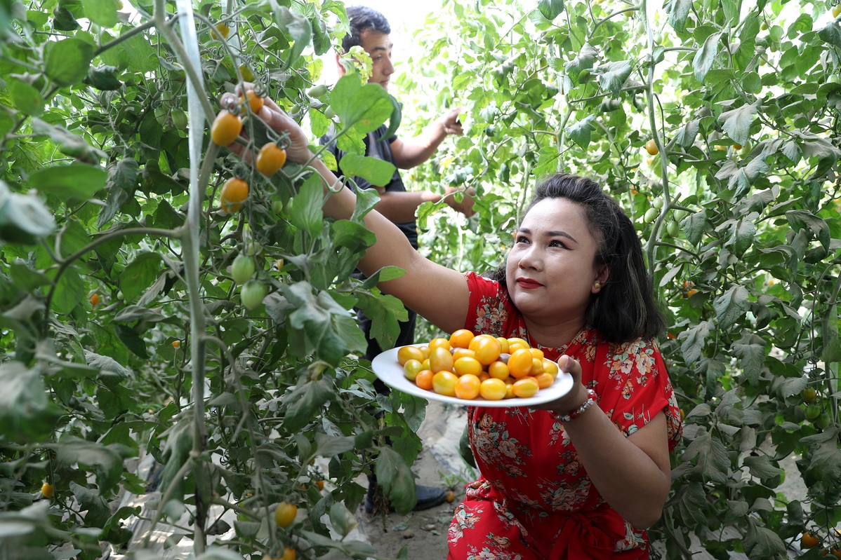 Farmers harvest tomatoes in Jinnan New Village of Qira county, Hotan. [Photo by Wang Zhuangfei/chinadaily.com.cn]