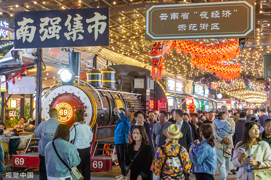 People visit the NanQiang Night Market in Kunming, Yunnan province on March 29, 2023. [Photo/VCG]