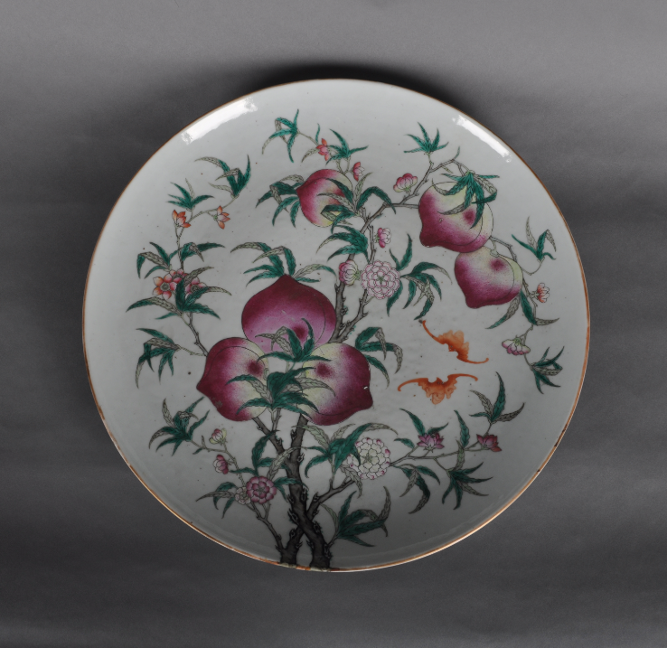 Famille-rose plate with peach patterns, Qianlong reign of the Qing Dynasty [Photo/Official WeChat account of the Xiamen Museum]