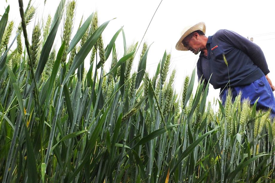 A farmer works in a wheat field in Yuncheng, Shanxi province. [Photo by Gao Xinsheng/For chinadaily.com.cn]