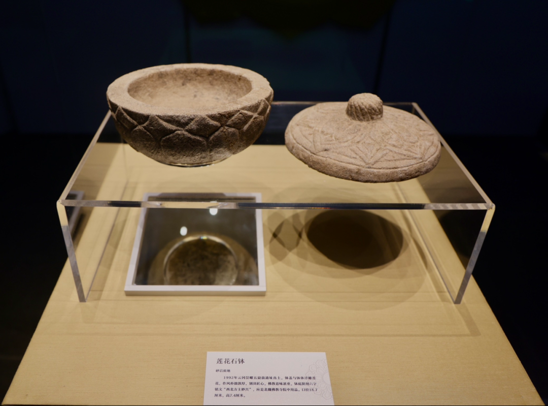 Stone alms bowl with lotus patterns [Photo/Official WeChat account of the Suzhou Bay Museum]