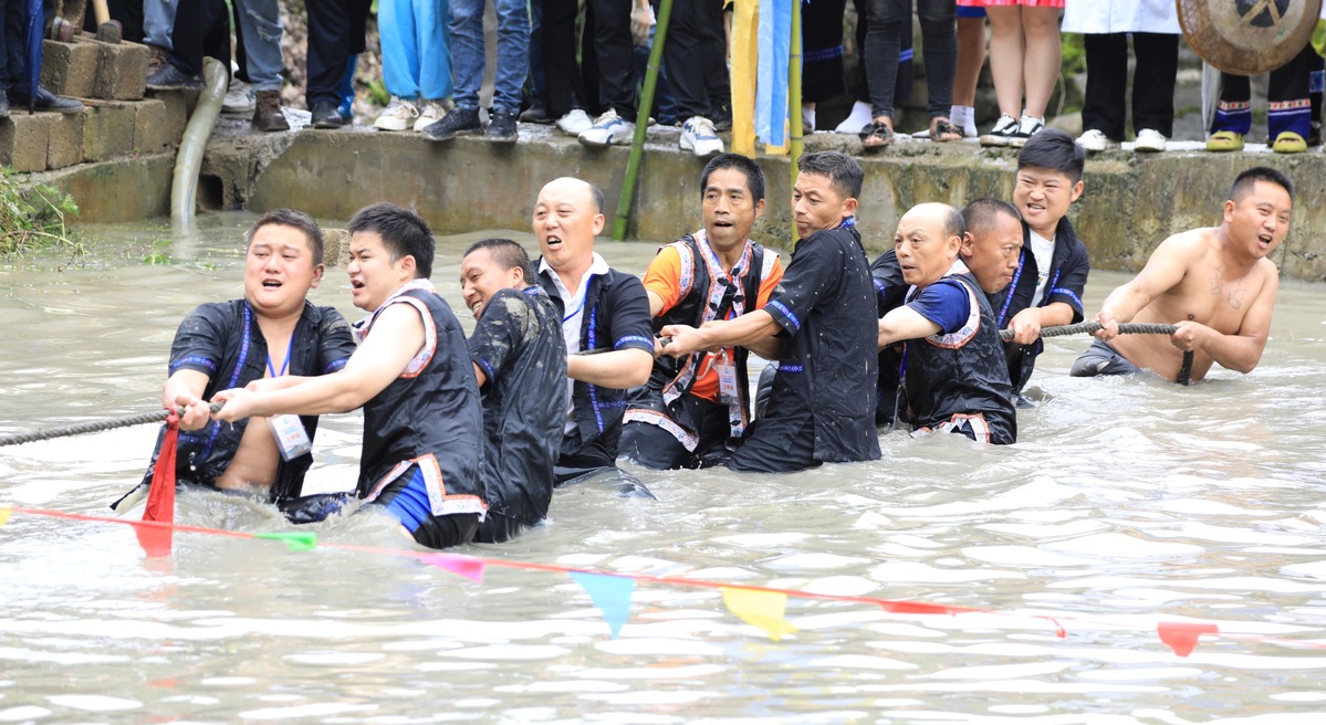 A tug-of-war takes place at the sixth Farming Folk Culture Festival on Sunday in Paidang village in Hunan province. [Photo by Long Enze/For chinadaily.com.cn]