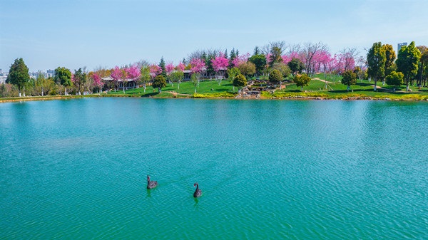 Clusters of cherry blossoms have bloomed in March in the Chenggong campus of Yunnan University – located in the city of Kunming, capital of Southwest China's Yunnan province.