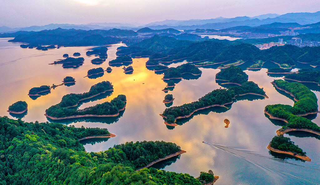 Discover the stunning beauty of the Pearl Islands in Qiandao Lake (Thousand Island Lake), located in the Chun'an county of Zhejiang province! With a myriad of colorful and uniquely shaped islands set against the backdrop of a sparkling blue lake, it's like you've stepped into a natural watercolor painting.