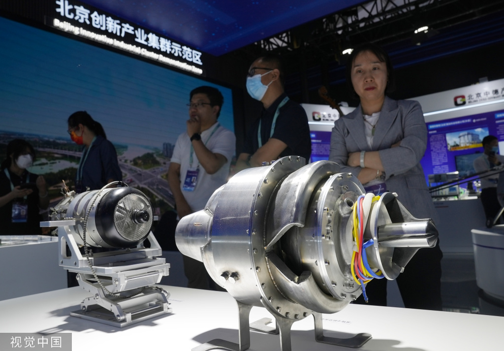 A wave rotor aero-engine is displayed at the exhibition area of 2023 ZGC Forum held in Beijing, May 24, 2023. [Photo/VCG]