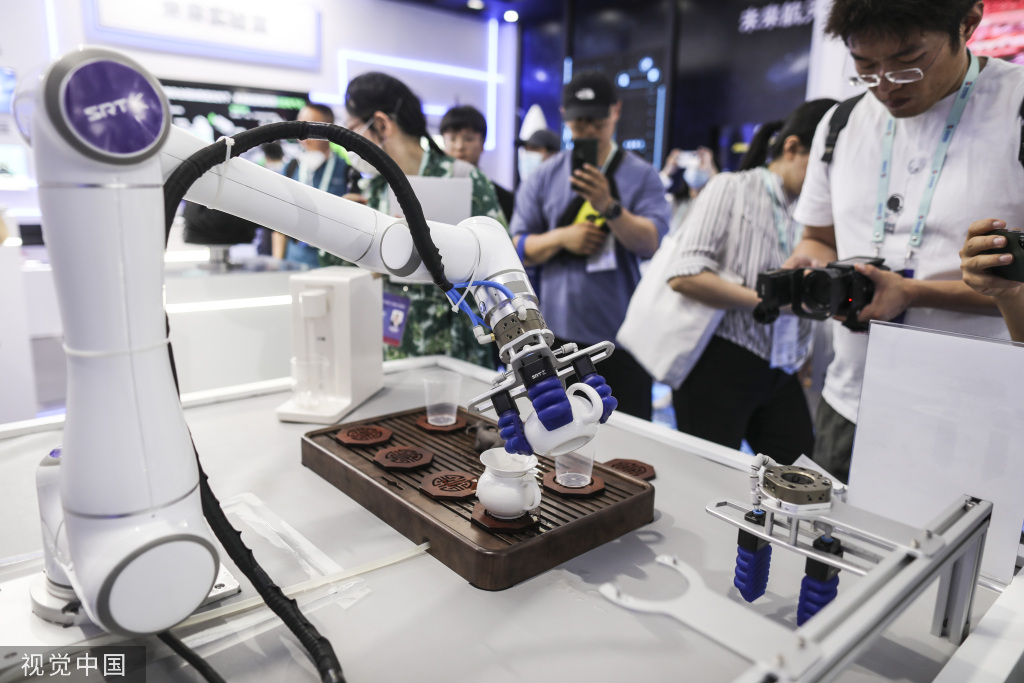 A robot is demonstrated at the exhibition area of 2023 ZGC Forum held in Beijing, May 24, 2023. [Photo/VCG]