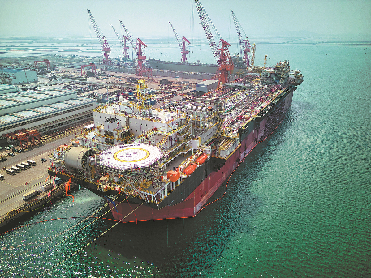 The hull and living quarters of the Bacalhau — the world's first M350 floating, production, storage and offloading vessel — were delivered on Friday at the Changxingdao shipyard in Dalian, Liaoning province, marking a breakthrough for the Chinese shipbuilding industry.