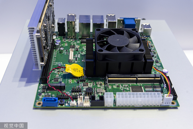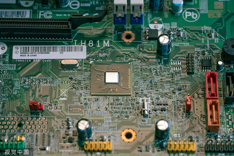 Computer motherboard chips, green integrated circuit boards and electronic components are displayed in Beijing, Oct 20, 2022. [Photo/VCG]