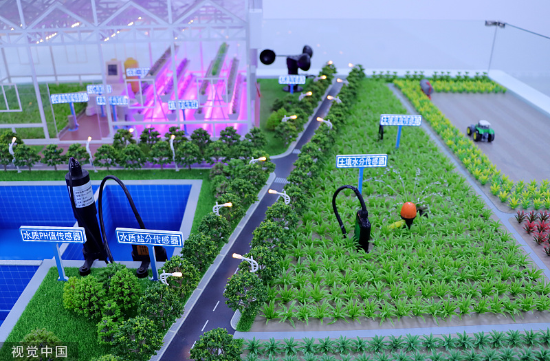 A miniature model of soil moisture sensor and water quality salinity sensor system for the Internet of Things in Changzhou, Jiangsu province, Sept 29, 2022. [Photo/VCG]