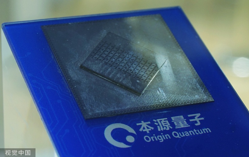 A chip of Origin Quantum is on display at an event for 2023 China Brand Day in Shanghai on May 10, 2023. [Photo/VCG]