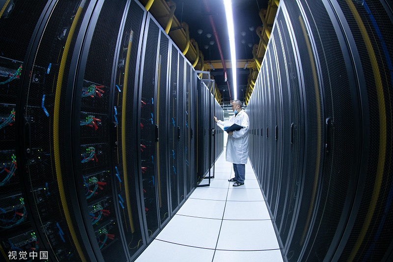 A man works at a big data center in Jiujiang, Jiangxi province on May 22, 2022. [Photo/VCG]