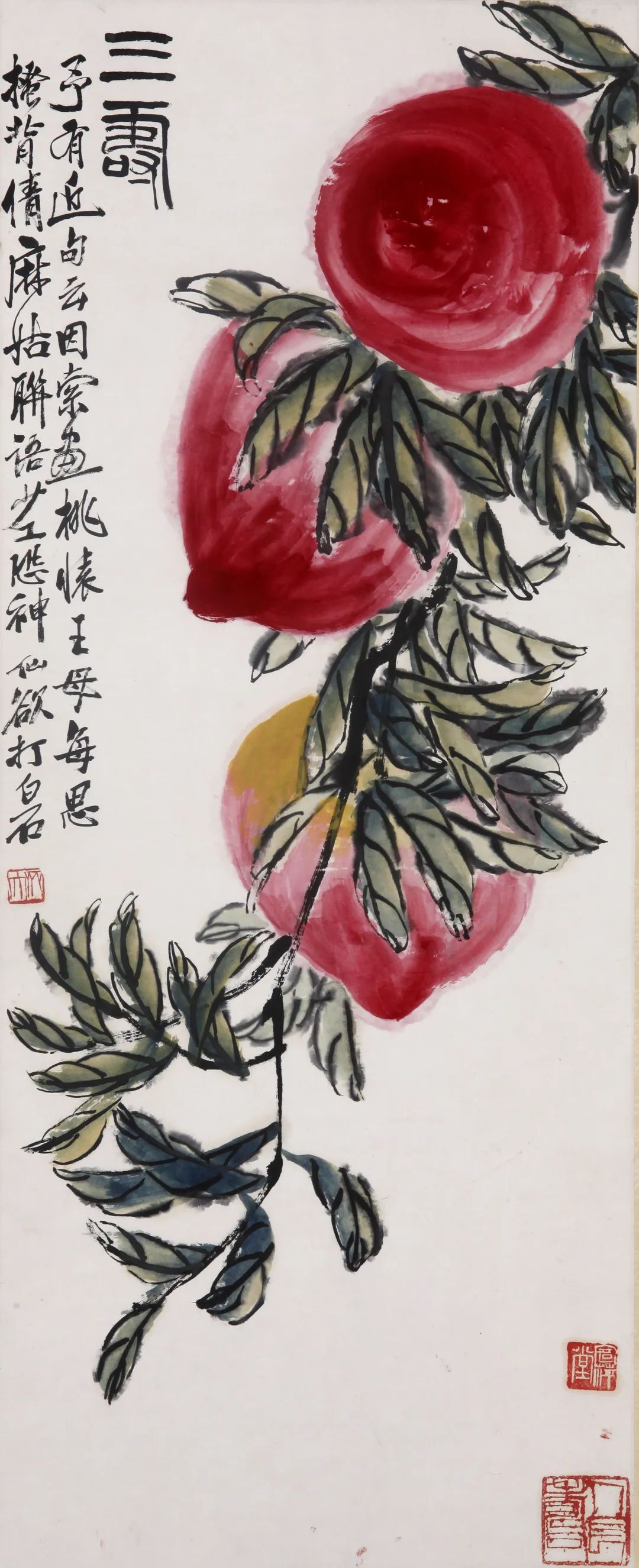 Three Longevity Peaches, Qi Baishi (1864-1957) [Photo/Official WeChat account of the Tianjin Museum]