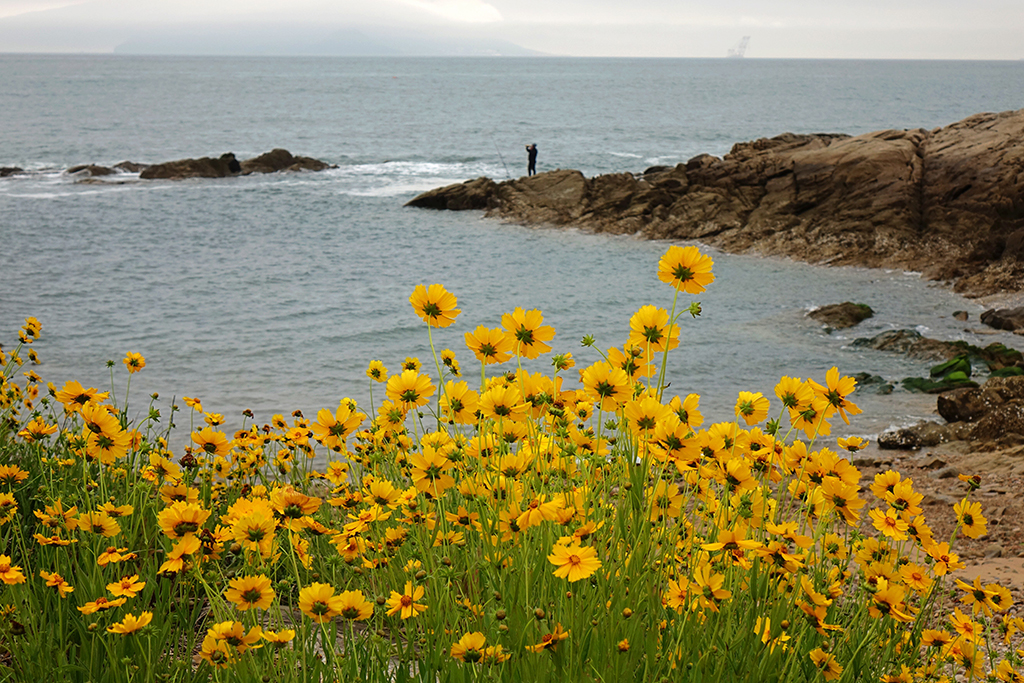 The coastal area along the Huandao Road in Qingdao's West Coast New District is one pretty sight. The goldenmane tickseed (Coreopsis basalis) blossomed in abundance, creating a stunning yellow floral carpet that perfectly complemented the azure expanse of the sea.