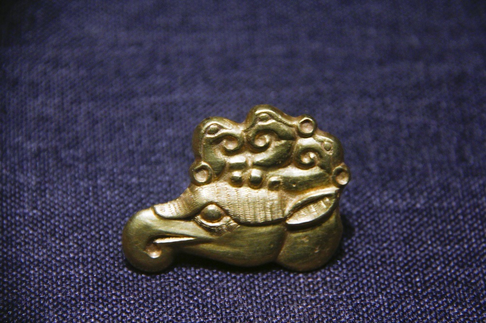Golden rein buckle in the shape of an elephant unearthed from the Luozhuang Han Dynasty Noble Mausoleum, kept in the collection of the Jinan Archaeological Research Institute [Photo/IC]