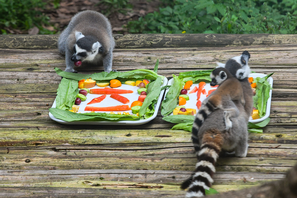 Chongqing Zoo prepares a delightful feast for ring-tailed lemurs on Children’s Day. [Photo/IC]
