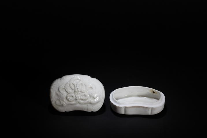 Xing kiln white-glazed ruyi-shaped cosmetic case, Tang Dynasty (618-907), from the collection of the Guanfu Museum [Photo/Official WeChat account of the Guanfu Museum]