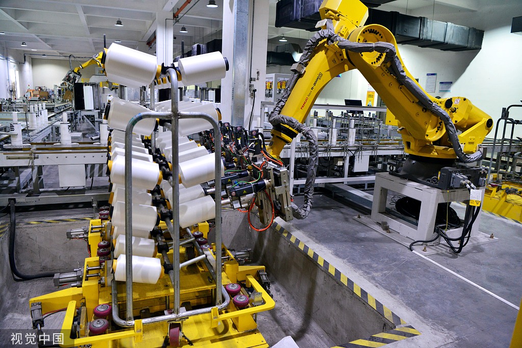 In Fuzhou's Changle district, a chemical fiber textile enterprise showcased the latest industrial Internet trials as robots seamlessly operated on the production line within their intelligent workshop.