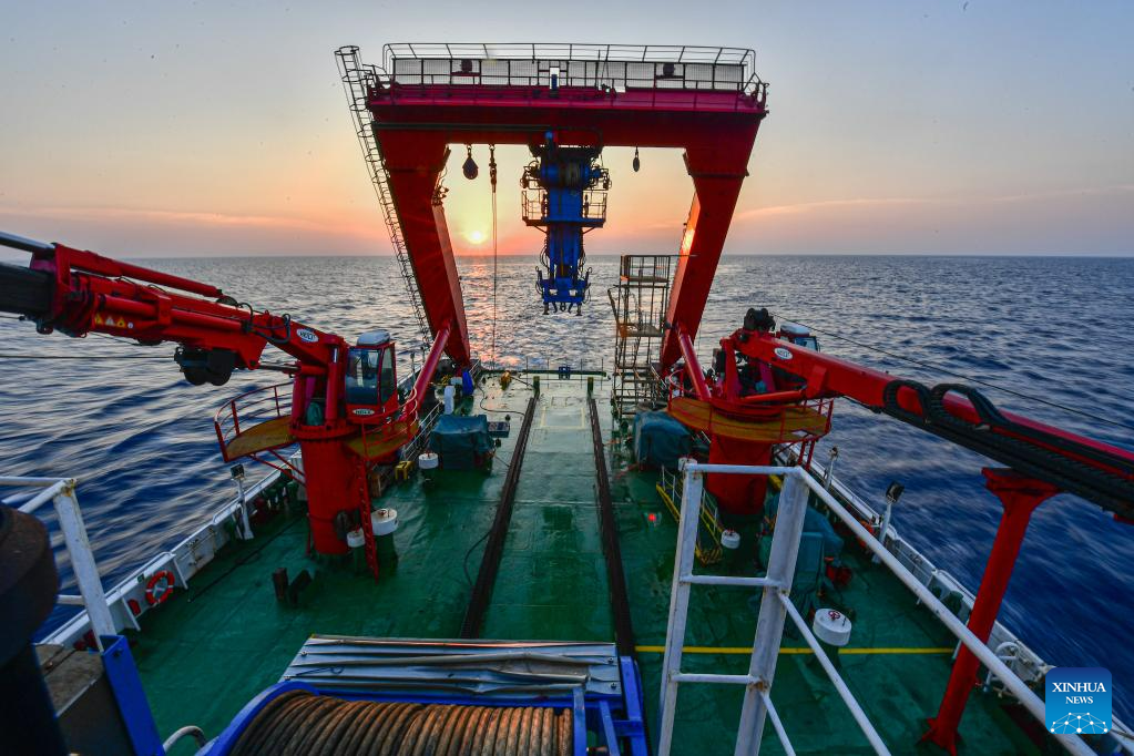 China's scientific research ship Tansuo-1 sails near the site of the No 1 and No 2 shipwrecks near the northwest continental slope of the South China Sea, May 24, 2023. [Photo/Xinhua]