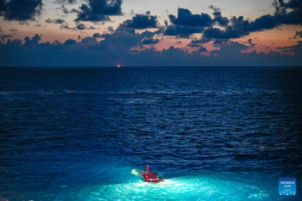 (Deep Sea Warrior) resurfaces after completing a day's underwater investigation in the South China Sea, May 27, 2023. [Photo/Xinhua]