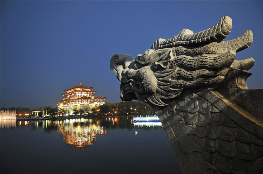 The night scenery of Tang Paradise in Xi'an. [Photo provided to chinadaily.com.cn]