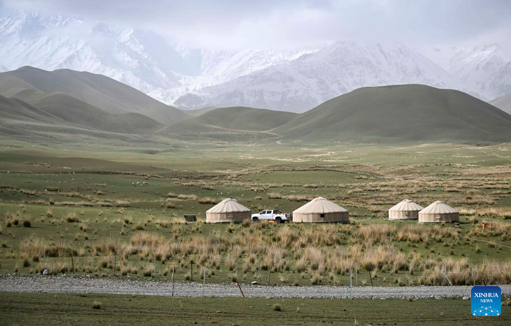 This photo taken on May 31, 2023 shows an alpine pasture in the Kunlun Mountains area in Qira county of Hotan prefecture, Northwest China's Xinjiang Uygur autonomous region. [Photo/Xinhua]