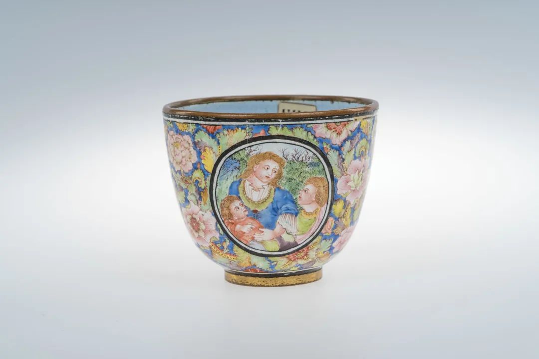 Enamel cup depicting Western figures, Kangxi reign, provided by the Cultural Relic Hall of the Chinese University of Hong Kong [Photo/Official WeChat account of the Shenzhen Museum]