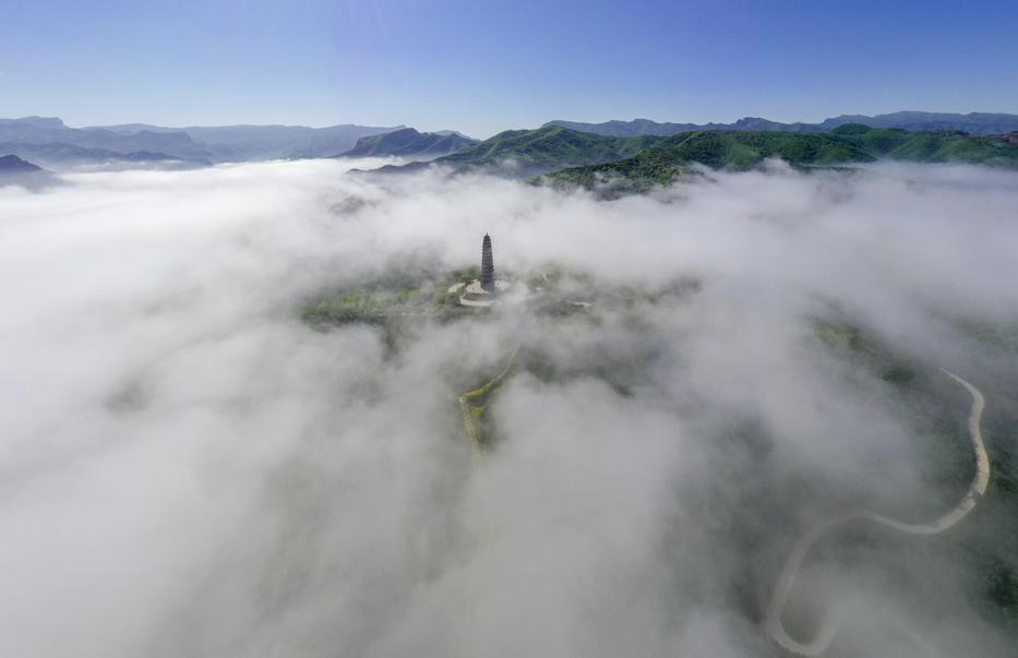 White clouds and mist were seen around the peaks and forests of Taihang Mountain in Zuoquan county, Shanxi province, after several days of rain. [Photo by Zhao Weidong/For chinadaily.com.cn]