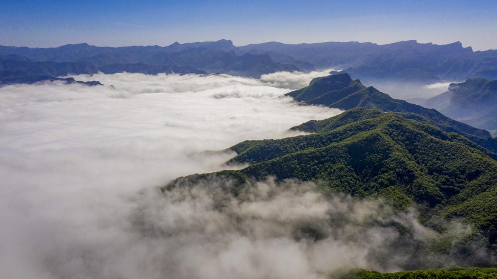 White clouds and mist were seen around the peaks and forests of Taihang Mountain in Zuoquan county, Shanxi province, after several days of rain. [Photo by Zhao Weidong/For chinadaily.com.cn]