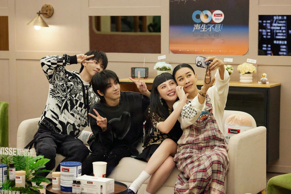 (From left to right) Singers Ma Jiaqi, Hua Chenyu, Waa Wei and Na Ying pose for a photo in scene from  Infinite and Beyond. [Photo provided to China Daily]