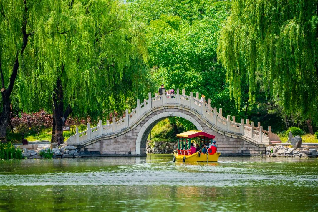 Tourists row a boat in Yuanmingyuan Park (Old Summer Palace) in Beijing. [Photo/Official WeChat account of Yuanmingyuan Park]