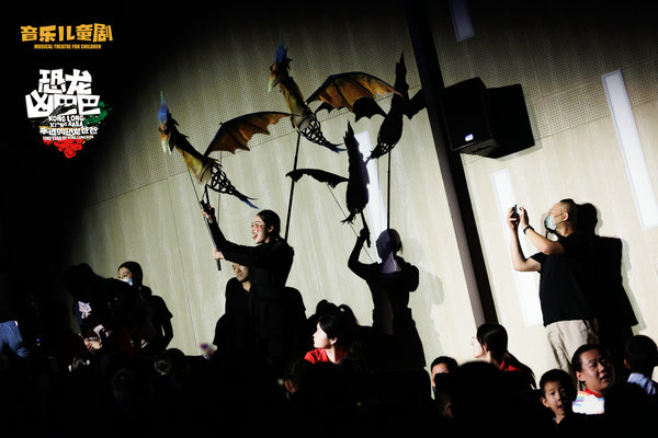 The play, three years in preparation, directed by Wang Junting and produced by Zhang Lulu, tells the story of a dinosaur and its father. "They go through troubles and work together to solve problems, just like the children who came to watch the show and their parents," says Zhang.